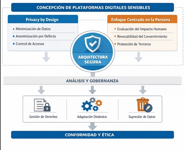 En el trabajo cotidiano de concepción y auditoría de plataformas digitales en ámbitos como la e-salud, la educación digital o los dispositivos de investigación social, aparece una constante: muchos proyectos cumplen formalmente con la normativa, pero fallan en su diseño estructural. La protección de datos no puede limitarse a avisos legales, formularios de consentimiento genéricos, o medidas técnicas aisladas. Esta proteccion debe formar parte de la arquitectura del sistema es decir, una definición precisa de finalidades, minimización estricta, control de accesos, temporalidad del tratamiento y capacidad real de supresión o transformación de los datos cuando el contexto cambia.